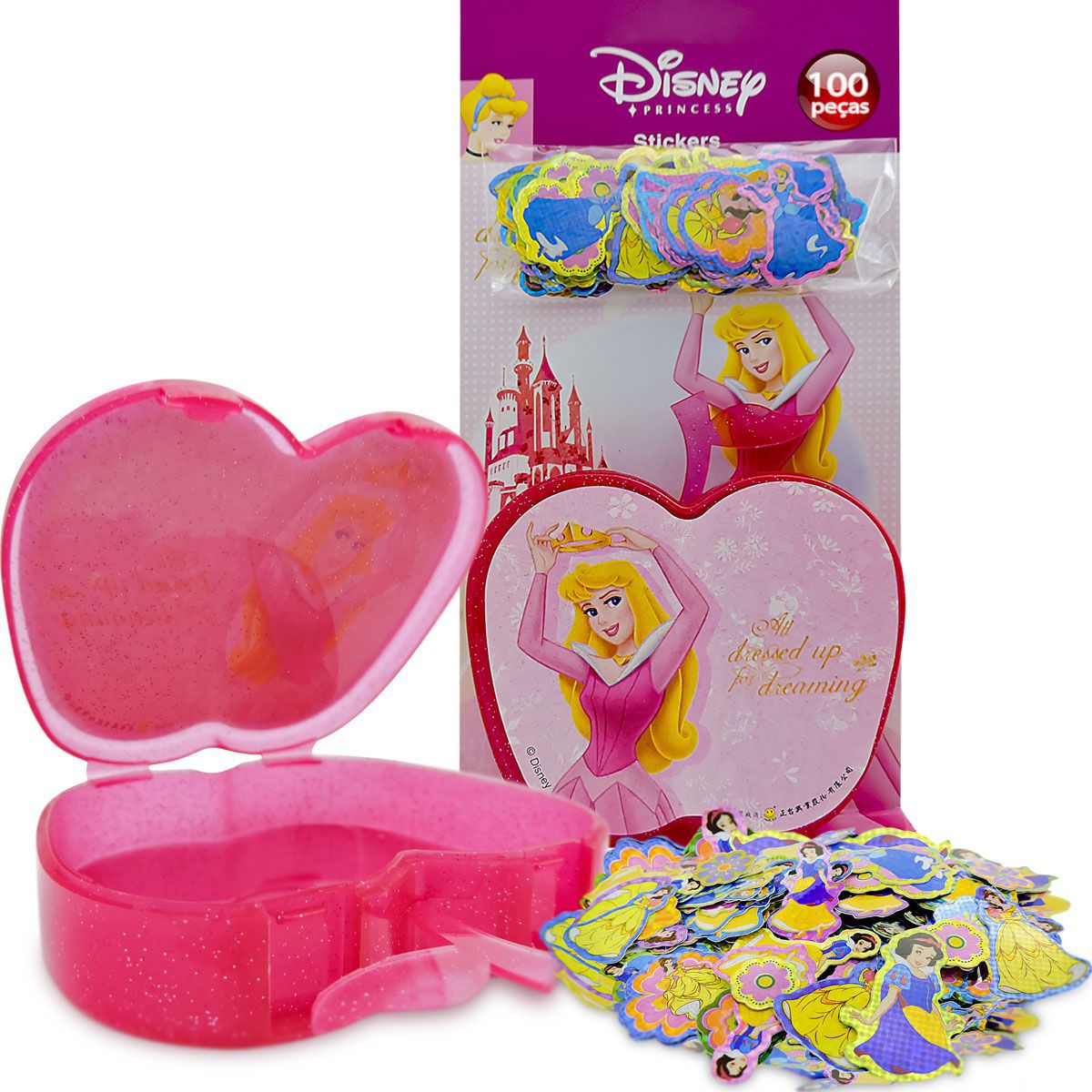 100 Adesivos + Porta Adesivos Aurora Bela Adormecida Princesas Disney.