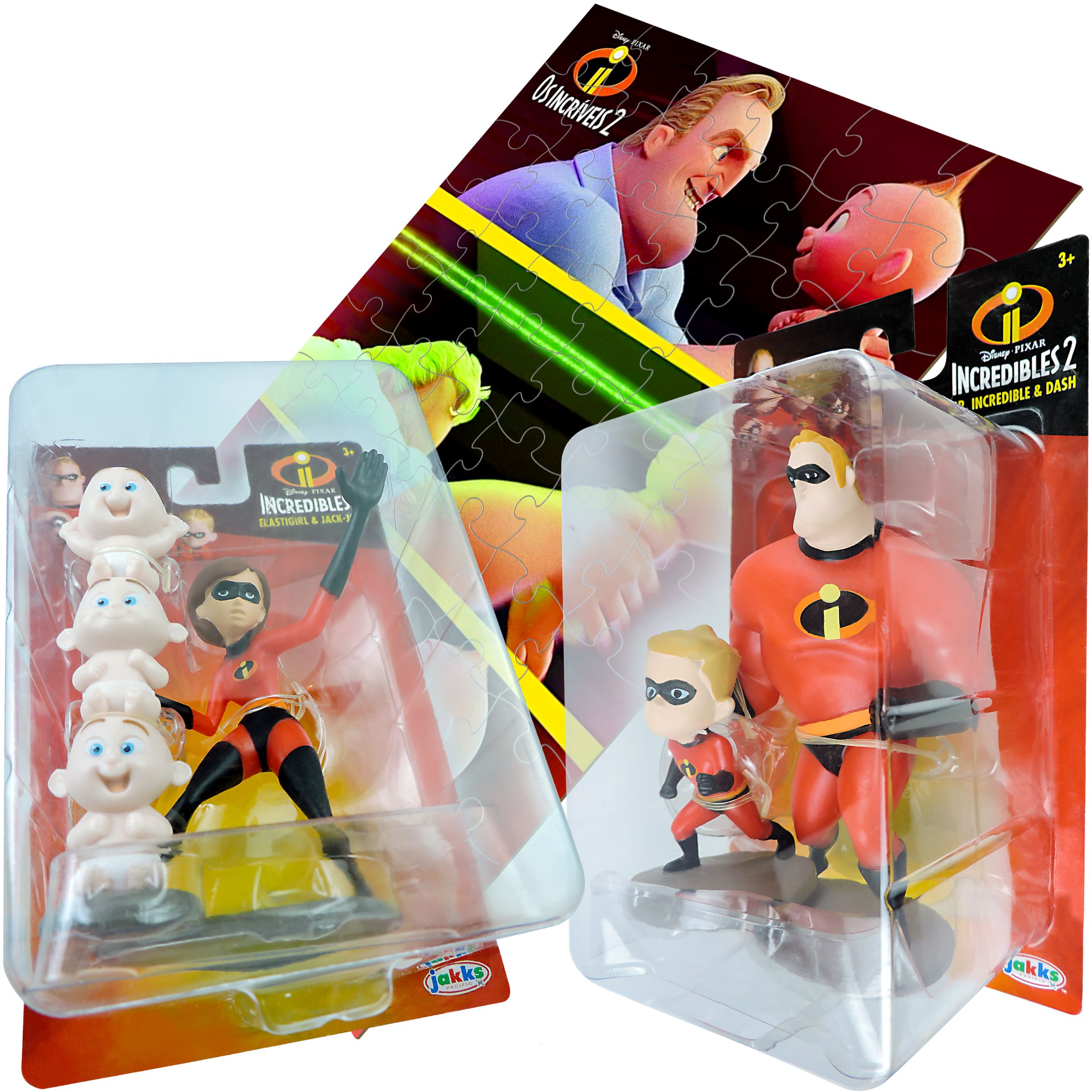 Coleção Os Incríveis Disney 4 Bonecos + Quebra-Cabeça.